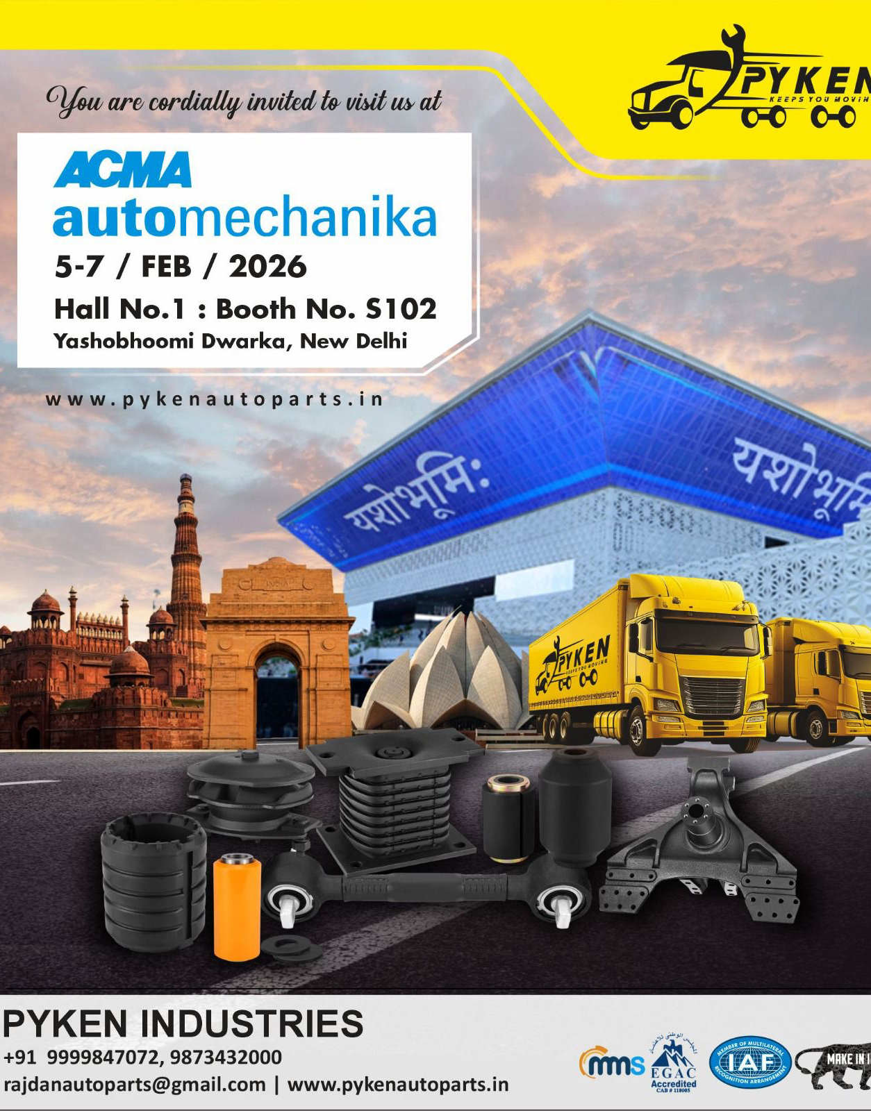 You are cordially invited to visit Pyken at ACMA Automechanika 2026 to experience our advanced range of heavy commercial vehicle spare parts designed for performance, safety, and style. Location: Hall 1, Booth No. S102 Dates: February 5, 6 & 7, 2026 Discover next-generation automotive solutions that redefine innovation, durability, and driving experience. We look forward to your presence
